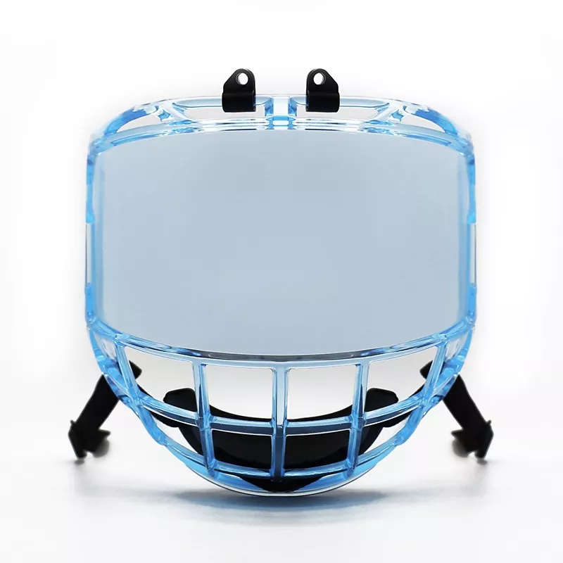 Verbeterde zichtbaarheid: Het bubbelontwerp optimaliseert het perifere zicht. Spelers kunnen het ijsoppervlak, de tegenstanders en de puck duidelijk zien, terwijl hun gezichten goed beschermd blijven, wat hun prestaties tijdens het spel verbetert.