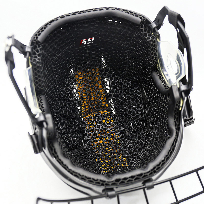 Deze helm combineert de modernste 3D-printtechnologie met het lichtgewicht en toch robuuste karakter van koolstofvezel en biedt ongeëvenaarde duurzaamheid en comfort op de ijsbaan. Het ergonomische ontwerp garandeert een stevige en veilige pasvorm, en de kenmerkende voeringstructuur absorbeert schokken optimaal, waardoor de veiligheid tijdens het spelen wordt verhoogd. Met aanpasbare opties voor ventilatie en esthetiek voldoet deze koolstofvezel 3D-geprinte ijshockeyhelm aan de hoogste prestatienormen, waardoor het de beste keuze is voor mensen die op zoek zijn naar innovatie en bescherming.