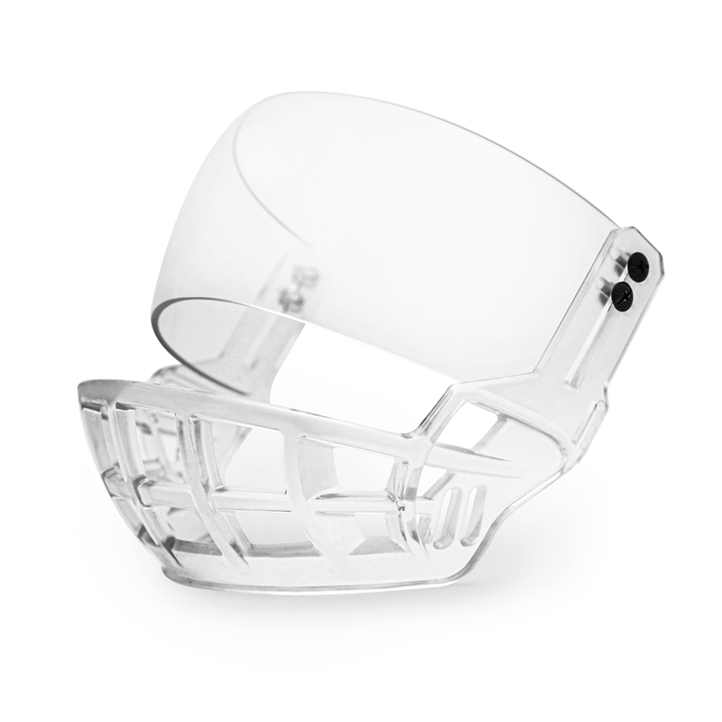 Ondanks dat het licht van gewicht is, biedt het een sterke bescherming zonder uw mobiliteit te beperken. Je voelt het gewicht nauwelijks als je op het ijs schaatst en snelle bochten en sprints net zo gemakkelijk maakt als voorheen. Installatie is eenvoudig. Ons ontwerpteam heeft ervoor gezorgd dat dit schild binnen enkele minuten en zonder problemen op de meeste standaard vizieren kan worden bevestigd. Klik hem gewoon op zijn plaats en je bent klaar om te spelen.
